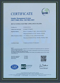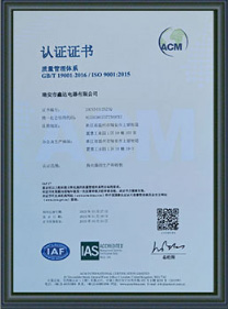瑞安市鑫达电器获得国内外各种证书,ISO质量管理体系证书等